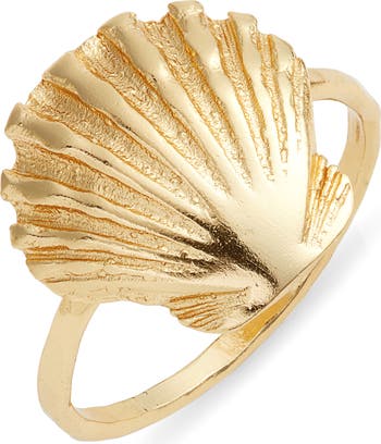 A textural shell tops this vermeil ring, bringing a sculptural, coastal-inspired element to a classic piece. The warm vermeil finish highlights the intricate detailing, while the bold yet refined design makes it an effortless statement piece for everyday wear.