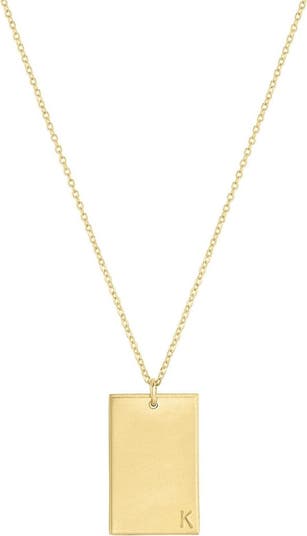 A subtle initial is hand-stamped into a rectangular tag pendant on this handmade necklace that'll personalize any stack.