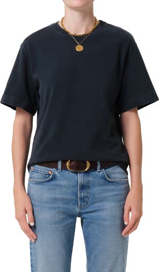 Elbow-length sleeves frame the easy fit of this cotton T-shirt that's a no-brainer when you want to feel comfortable but still make a stand-out statement.