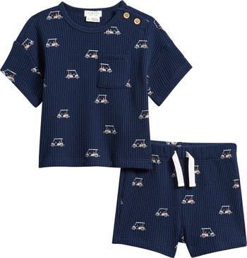A stretch-enhanced organic-cotton blend keeps baby feeling comfy as they spend the day on the golf course in this thermal T-shirt-and-shorts set.