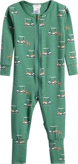 A sporty print brings cuddly charm to these convertible footie pajamas made from a soft and stretchy knit with grips on the feet for steady steps.