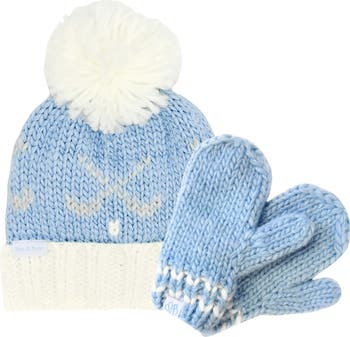 Bits & Bows Golf Clubs Knit Hat/Mittens Bundle, Main, color, Blue