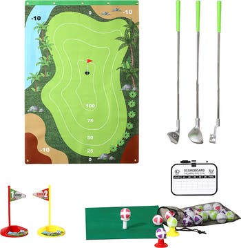 Experience the excitement of golf with the Chipping Golf Game. Club Mat includes 1 Chipping Mat, 3 Golf Clubs, 20 Golf Balls, 2 Golf Holes, 4 Ground Stakes, 4 Hooks, and more. This versatile set offers three different ways to play, providing kids with realistic golf experiences that attract their interest and help cultivate attention and hand-eye coordination. With diverse gameplay options and 20 balls, friends and family can join in for a thrilling golf competition using the erasable counting board provided.The set includes 4 ground stakes and hooks, as well as all necessary installation accessories, ensuring a stable setup for endless fun. Everything can be conveniently packed in the carrying bag, making it easy to transport both indoors and outdoors. Perfect for parties, family gatherings, or casual play, this game promises hours of entertainment and skill development. Encourage active play and friendly competition with the Chipping Golf Game Club Mat, designed for fun and convenience.