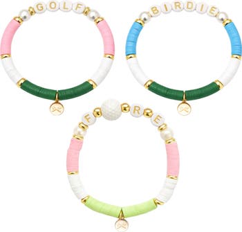 - Set includes 1 GOLF bracelet, 1 FORE bracelet, and 1 BIRDIE bracelet