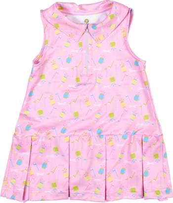Playful and polished, this dress is crafted from our pink golf print performance knit, offering lightweight stretch and all-day comfort. A front zipper gives it a sporty, easy-to-wear finish, while the pleated skirt adds movement and classic charm. Perfect for vacation outings, sunny-day play, and picture-perfect moments on and off the course.