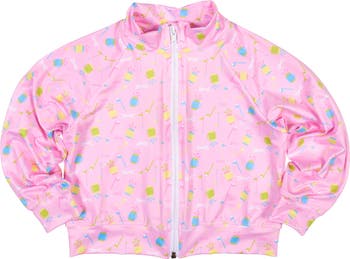 Sporty, lightweight, and perfect for warm-weather adventures, this cropped jacket is crafted from our pink golf print performance knit with soft stretch for all-day comfort. A front zipper adds ease and versatility, making it an ideal layer over tees, tanks, or the matching golf print dress. Designed for vacations, sunny outings, and playful days on the move, it delivers a polished, athletic look with effortless charm.