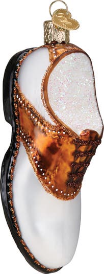 Deck your tree with tradition and craftsmanship. This hand-painted, mouth-blown golf-shoe ornament is a festive nod to holiday cheer and artisan detail.