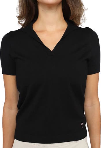 The Golftini Short Sleeve Women's Golf Sweater is a perfect blend of style and comfort, ideal for cooler days on the course. Crafted from a soft, lightweight knit, this sweater provides warmth without sacrificing breathability. Its short sleeves and tailored fit offer a chic, polished look, making it a versatile addition to your golf attire that transitions seamlessly from the green to casual outings.