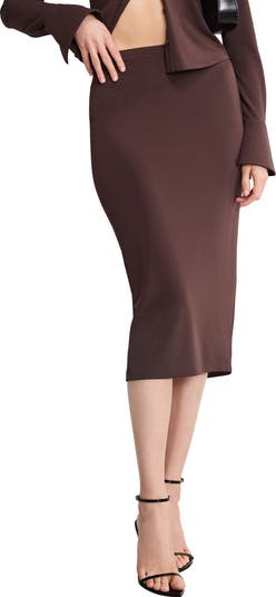 Designed in a classic pencil silhouette, this closet-staple skirt is made with a comfortable matter jersey and back vent for easy movement.
