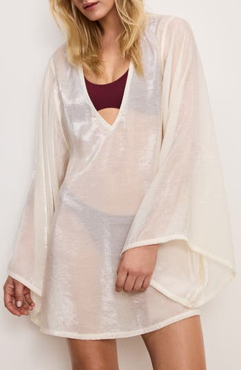 Wide sleeves give an ethereal vibe to this sheer cover-up tunic with a flowy fit that looks at home by the water.