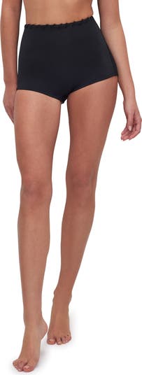 Go for a retro-glam vibe with high-waist bikini bottoms that feature a whipstitched accent at the edges.