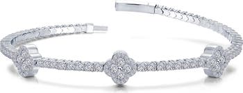 Three four-leaf-clover stations charm this hand-polished flexible bracelet adorned with 122 sparkling simulated diamonds.