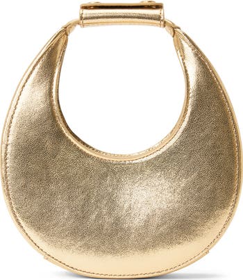 Metallic leather and a crescent-shaped silhouette add visual intrigue to a '70-inspired bag that will complement your trendsetting looks.