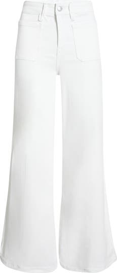 Dramatically wide legs bring runway-worthy movement to these high-waisted jeans reimagined with retro patch pockets.