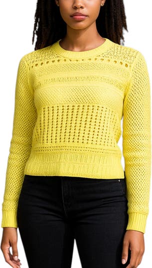 Pointelle long sleeve sweater in a vibrant citrus yellow.