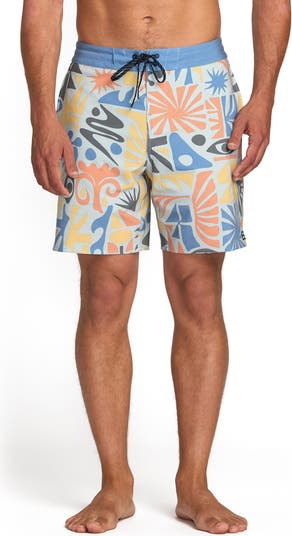 Make a splash in printed board shorts constructed from a stretchy, quick-drying fabric with an easy lace-up closure and handy side pockets.