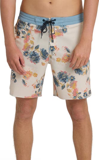 Stretchy, durable fabric made in part with recycled fibers keeps you riding high in board shorts designed with a secure back pocket for sun-and-sand essentials. Notched at the hems for easy movement, they sit right at the hips and hit just above the knees to protect your thighs in the water and give you total surfer cred on land.