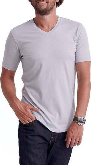 Soft, overdyed yarns texture a V-neck T-shirt made in the USA with a signature curved hem and a fit that's easy to layer and always great on its own.