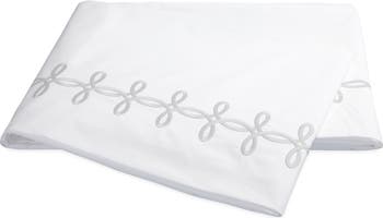Grecian-inspired embroidery in a graceful knot motif adds an elegant flourish to this flat sheet cut from luxuriously smooth and silky Egyptian-cotton percale.