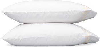 Grecian-inspired embroidery in a graceful knot motif adds an elegant flourish to these pillowcases cut from luxuriously smooth and silky Egyptian-cotton percale.