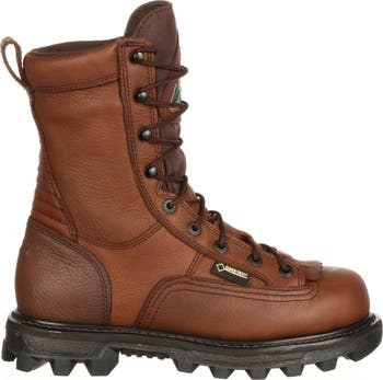 The Rocky 9 BearClaw boots are great for hunting, but you may want to work in them, too. Regardless of where you wear them, the #FQ0009237 boots are durable, rugged and comfortable. These Rocky boots are made with full-grain leather and tough nylon. They have genuine welt construction and a storm welt for durability, shape-retention and a solid platform for hours of wear. A breathable GORE-TEX fabric membrane keeps moisture out and keeps your feet dry. Rocky added 200 grams of 3M Thinsulate Insulation to the hunting boots to help keep your feet warm even on the coldest days.The lace-up system is a lace-to-toe pattern with eyelets, D-rings and hooks for maximum adjustment.When you're walking, your feet are comfortable because of Rocky's exclusive polyurethane cushioned Air-Port footbed which also is perforated for air circulation. And, of course, Rocky's own BearClaw 3D outsole has a multi-directional, self-cleaning lug design that grabs the ground to be able to give you traction wherever you walk.For waterproof, insulated boots with great traction, get the Rocky BearClaw.Related Links:br/>The Rocky 9 BearClaw boots are great for hunting, but you may want to work in them, too. Regardless of where you wear them, the #FQ0009237 boots are durable, rugged and comfortable. These Rocky boots are made with full-grain leather and tough nylon. They have genuine welt construction and a storm welt for durability, shape-retention and a solid platform for hours of wear. A breathable GORE-TEX fabric membrane keeps moisture out and keeps your feet dry. Rocky added 200 grams of 3M Thinsulate Insulation to the hunting boots to help keep your feet warm even on the coldest days.The lace-up system is a lace-to-toe pattern with eyelets, D-rings and hooks for maximum adjustment.When you're walking, your feet are comfortable because of Rocky's exclusive polyurethane cushioned Air-Port footbed which also is perforated for air circulation