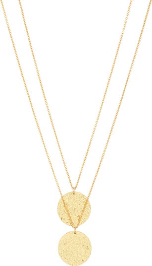 A hammered design adds a textured finish to this layered necklace made of gold plated brass.