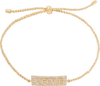 A shimmering pavè plate delights on this dainty, layer-friendly chain bracelet that adjusts for a perfect fit.
