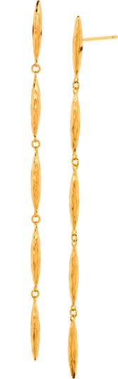 Super slimming and versatile, these gilded-chain earrings ripple with the warm shine of hammered 18-karat-gold plate.