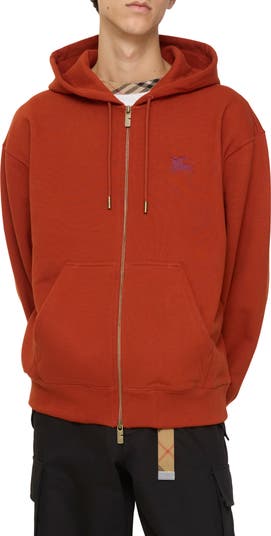 A zip hoodie made from lightweight loop-back cotton, cut to a relaxed fit. The style is embroidered with our Equestrian Knight Design and an archival logo from the 1940s.||Two-way zip closure|Drawcord hood|Pouch pockets|Rib-knit trims|Embroidered Equestrian Knight Design at chest
