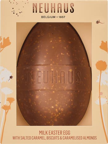 This hollow Easter egg is crafted with smooth, creamy milk chocolate and filled with delightful inclusions. Savor the velvety richness of milk chocolate, perfectly balanced with the bold flavor of salted caramel, the satisfying crunch of caramelized almond pieces, and the delicate crisp of butter biscuit pieces.