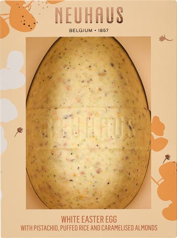 This hollow Easter egg is crafted with smooth, creamy white chocolate and filled with delightful inclusions. Indulge in the subtlety of velvety white chocolate enriched with caramelized pistachio, puffed rice and crunchy almond pieces. A harmonious blend of textures and flavors, making this Easter egg a true seasonal delight.