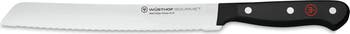A classic amongst the range of knives that belong in every kitchen: as well as bread, this knife is suitable for use on hard-skinned vegetables and fruit, as well as for roasts, especially those with crackling. The concave (inwardly curved), serrated edge of the knife works like the teeth of a saw, but is much finer, so no pressure is required to cut any sort of bread and even a hard crust will allow a clean cut. The small blunt section at the tip of the blade is designed for extra crusty loaves. As you slice down to the bottom of the loaf, simply lift the handle up and use the blunt tip to slice through the hard bottom crust.