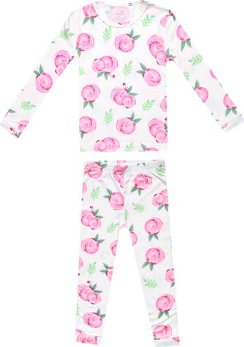 A two-piece pajama set decked in a watercolor floral print sweetens your little lady's bedtime look while keeping her cozy and comfy all night long.