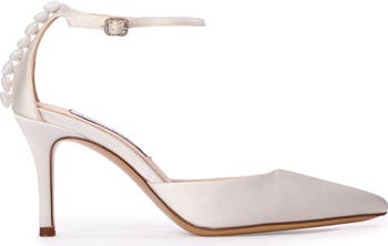 - Pointy toe classic pump sandal, set on an 80mm semi-flared stiletto heel. Featuring satin-covered buttons at the back counter.