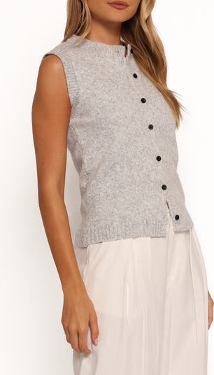 Ribbed detail and contrast buttons define this softly knit vest designed to complement your office looks and elevate your off-duty style.