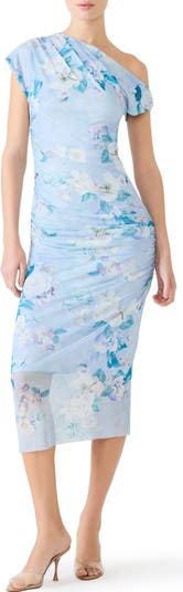 Gracelyn Floral Ruched One-Shoulder Midi Dress