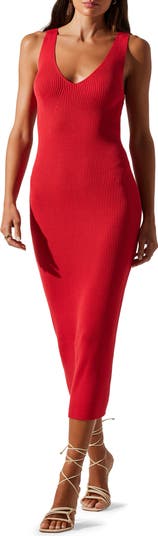 Back and side cutouts add a fun, flirty element to a ribbed sweater-dress that's a date-night standout.