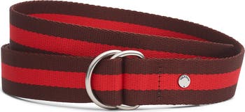Add a pop of color with sturdy woven belt closed with a silvery D-ring for ultimate adjustability.