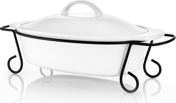 Gracious Dining 2 Piece Oval Stoneware Bakeware with Lid and Metal Rack