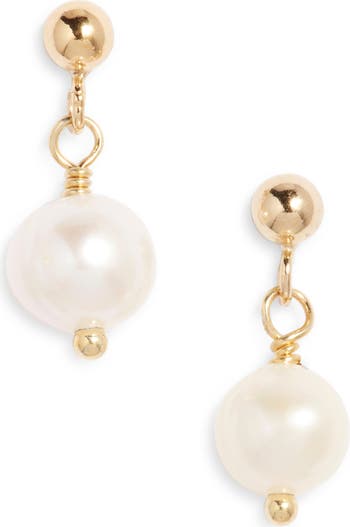 Lustrous freshwater pearls bring a milky glow to these dainty handmade earrings in 14-karat gold fill.