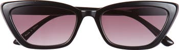 A classic cat-eye profile and smoky lenses distinguish everyday sunglasses crafted from lightweight plastic.
