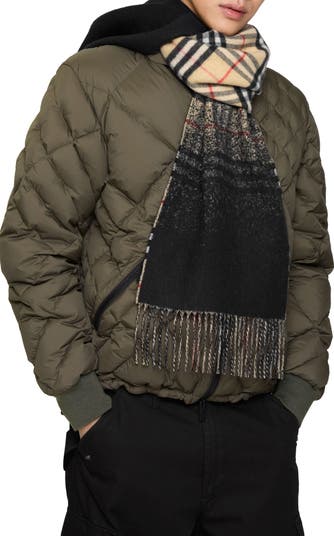 Burberry's instantly recognizable checks bring heritage character to this double-face cashmere fringe scarf woven on traditional looms at a centuries-old Scottish mill. Each piece is refined through more than 30 meticulous steps—from a spring water wash to a final teasel brushing—for a subtle luster and ultrasoft handfeel.
