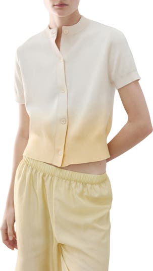 Sunny hues create a dreamy gradient on this lightweight cotton cardigan made with short sleeves and a slightly cropped length.