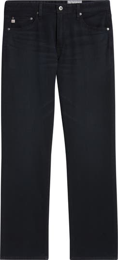 Tapered leg openings bring a modern, tailored look to straight-leg jeans made from soft, lightweight stretch denim.