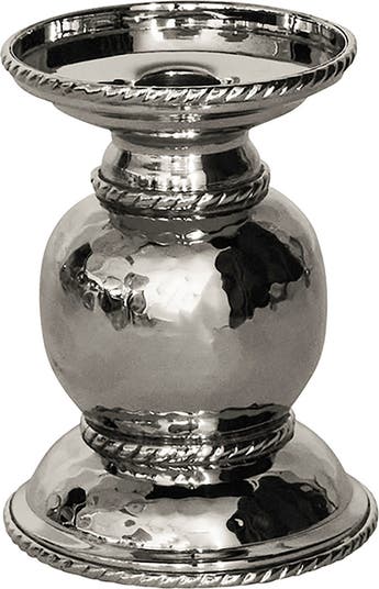 The brand's iconic thread motif plays against the hammered finish of this candleholder that's cleverly designed to highlight both slender tapers or sturdy pillar candles.
