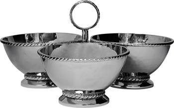 The brand's iconic thread motif plays against the hammered finish of this triple bowl that's a casually sophisticated addition to your party spread, cocktail hour or sunset-watching on the deck.