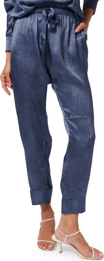 Bask in the glow of pure silk in these high-waist pants cut with straight legs and cinched with a drawstring waist.
