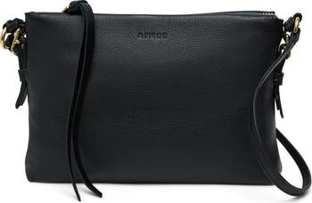 Debossed logo accents bring a signature flourish to a slim leather crossbody bag featuring multiple pockets and and adjustable strap for on-the-go convenience.