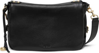 Polished hardware and textured trims highlight the leather exterior of a slouchy and spacious messenger bag designed with expandable gussets for added storage. An optional crossbody strap provides hands-free wear.