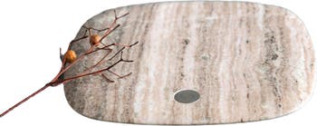 • The natural material displays thin bands of gray and white within, guaranteeing no two boards look exactly alike. This softly rounded serving piece is roomy enough to fit a cheese assortment and rows of artisanal crackers along with serving utensils.